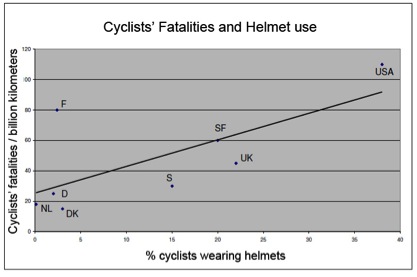 Obligāta ķiveru lietošana norāda uz riteņbraukšanas bīstamību, kas tāda nemaz nav. Ja salīdzina bojā gājušo skaitu autovadītāju un riteņbraucēju vidū, tad krietni vairāk bojā gājušo ir starp auto vadītājiem. Taču diskusija par ķiveru lietošanu autovadītājiem kaut kā liekas absurda.